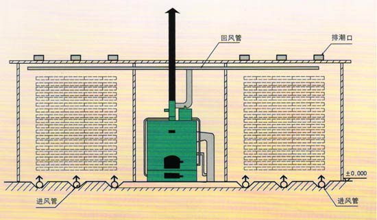 熱風式干燥設備工作原理是利用燃燒產(chǎn)生的熱能,加熱窯內(nèi)的空氣,由熱風爐頂部主風機將窯內(nèi)的空氣通過管道吸入爐體,將空氣加熱。再通過管道,送入窯內(nèi),由窯內(nèi)的循環(huán)風機不斷的循環(huán)對窯內(nèi)的木材均勻加熱。木材干燥過程中如需要蒸汽,可由熱風爐內(nèi)的蒸汽發(fā)生器提供,如果是一爐兩房或多房時,管道上裝有插閥,通過插閥的調(diào)節(jié)來控制窯內(nèi)的溫度。在干燥的過程中,由于木材要進行排濕,在窯頂上留有排濕孔(根據(jù)地區(qū)而定)和裝有抽濕機,用來調(diào)節(jié)排濕的快慢.