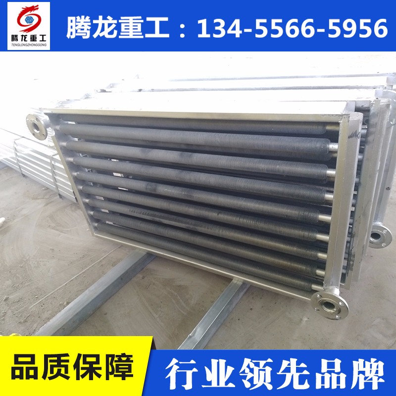 用于木材烘干,做內(nèi)循環(huán)(12次/小時(shí)),烘房尺寸11m*10m*5m,蒸汽壓力5kg(飽和),要求烘房溫度快速達(dá)到80℃。設(shè)計(jì)氣體流量:6600m3/h、進(jìn)風(fēng)溫度15℃;出風(fēng)溫度需滿足80℃,計(jì)算出釋放熱量126208.98 KCal/h 按照上述設(shè)計(jì)計(jì)算。需配2臺(tái)SRZ7×6D蒸汽散熱器一臺(tái),耐高溫風(fēng)機(jī)SF4G-2一臺(tái)。SRZ鋼制散熱器為框架固定結(jié)構(gòu),采用Ф22× 2mm無(wú)縫鋼管繞制上16×0.5mm皺折鋼帶而成,呈螺旋狀,叉排排列整體熱鍍鋅處理,結(jié)構(gòu)緊湊、氣密性好、安裝方便。在木材烘干散熱器的空氣加熱系統(tǒng)中廣泛應(yīng)用。